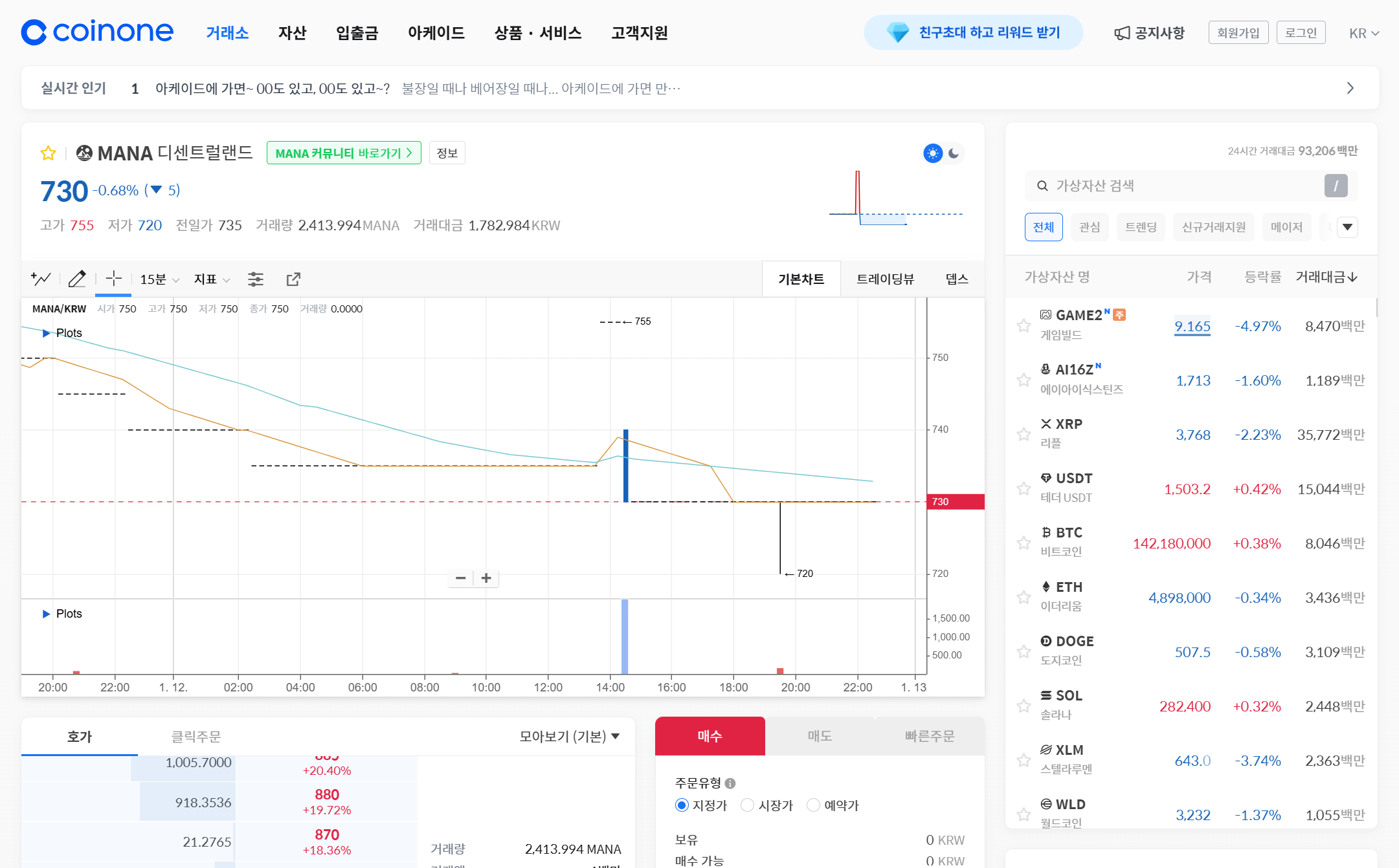 MANA 코인의 현재 시세 분석